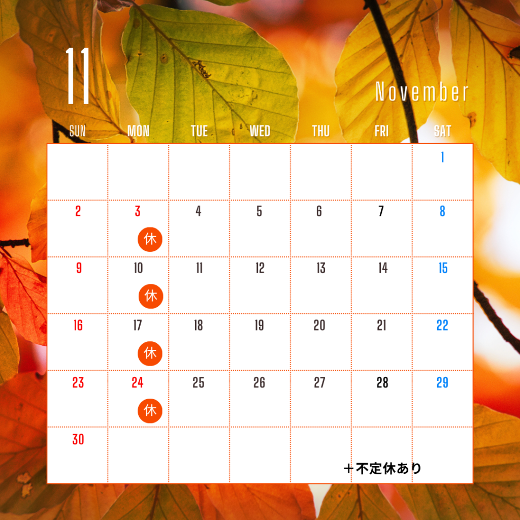 11月 3日(月) 10日(月) 17日(月) 24日(月) +不定休になります